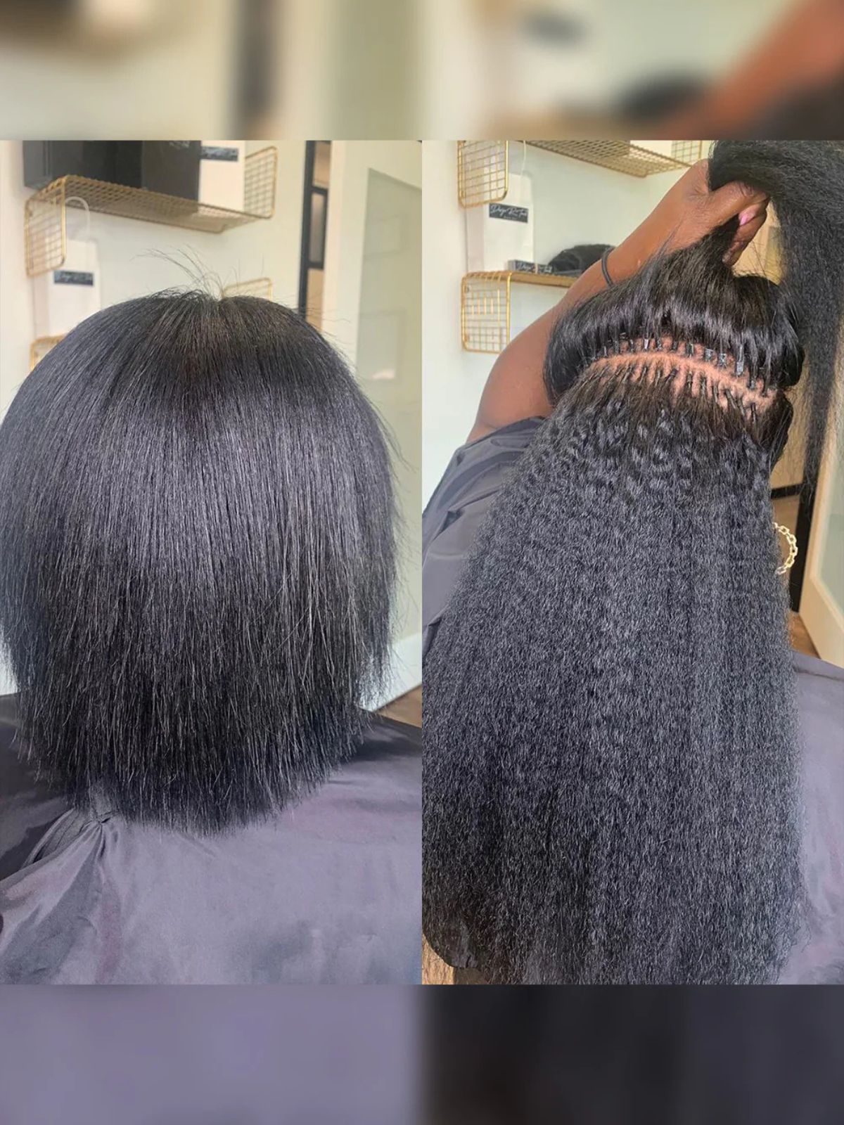 • Extensions are custom-blended to match your hair’s color and texture. Every set is carefully matched to your unique shade and hair pattern, ensuring a seamless blend that enhances your natural beauty without any visible difference.