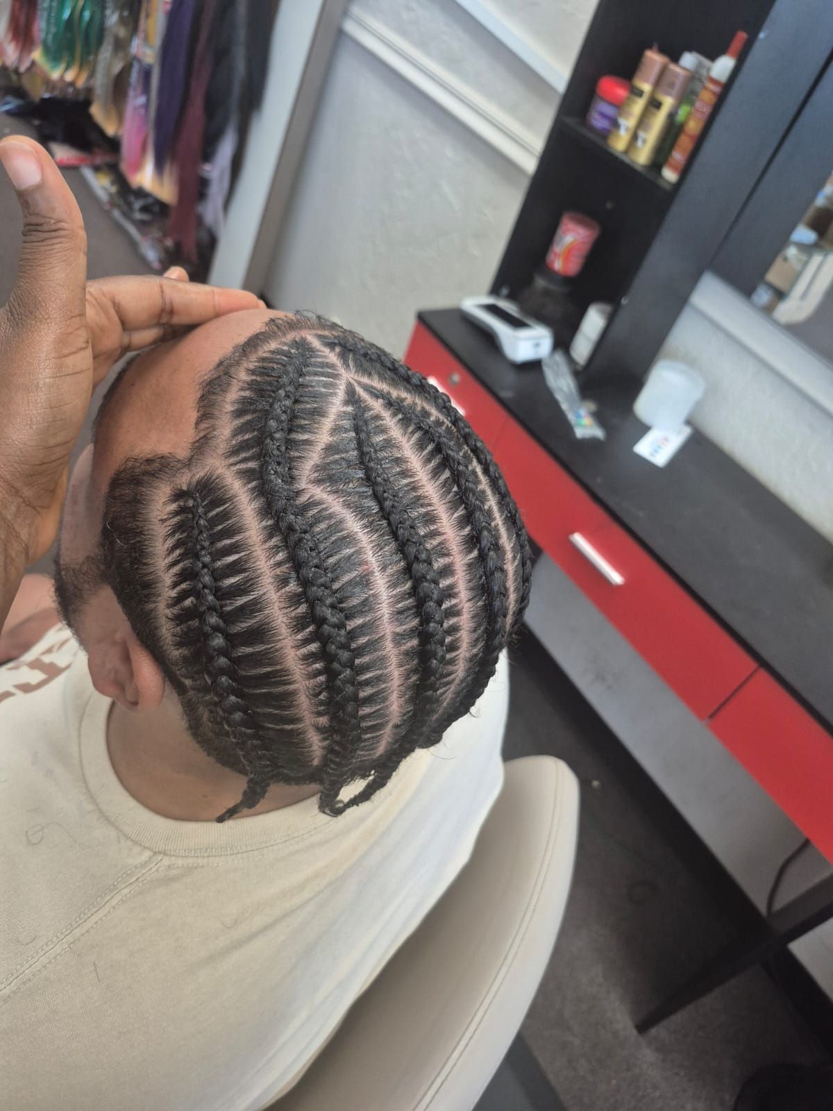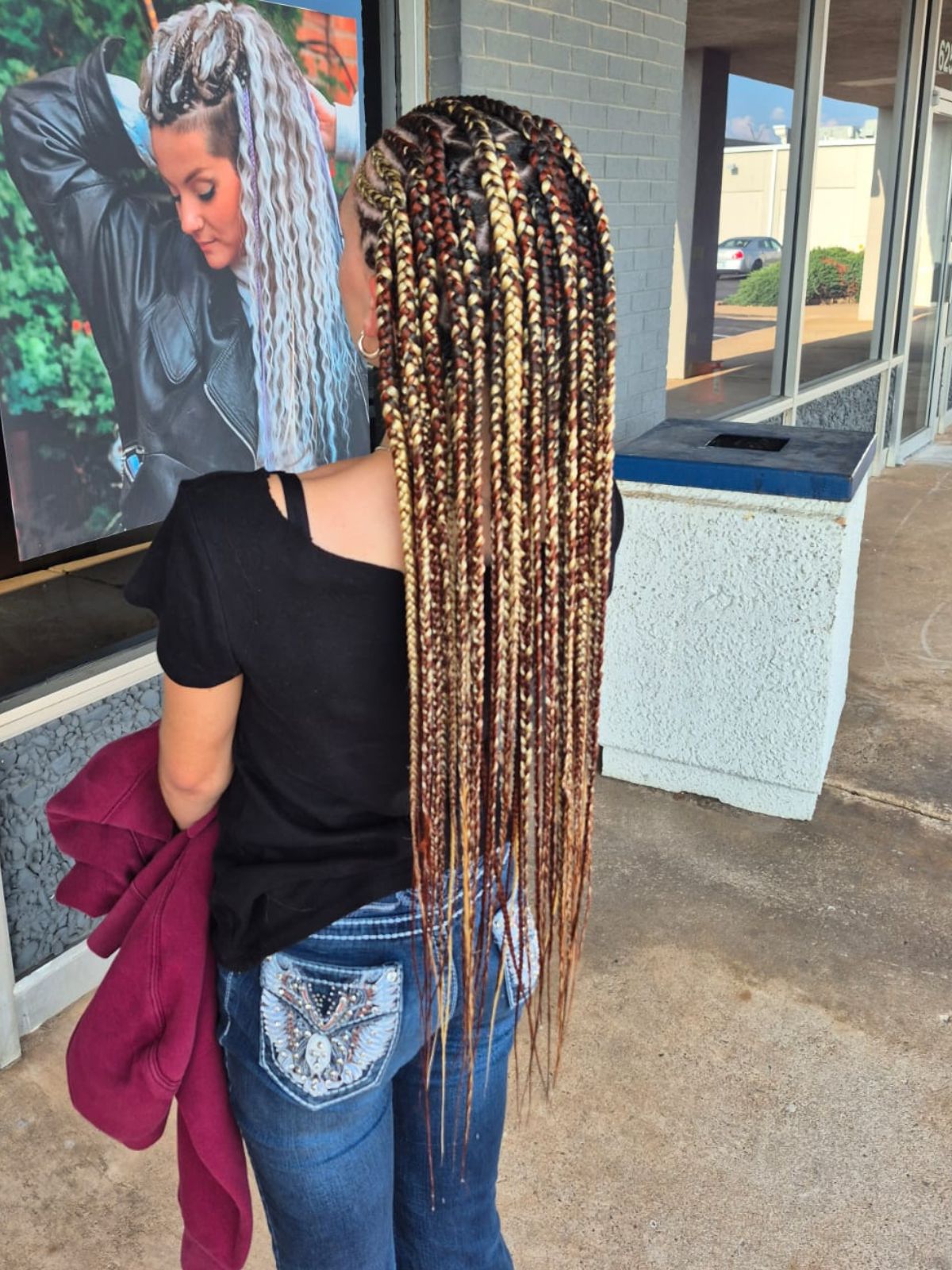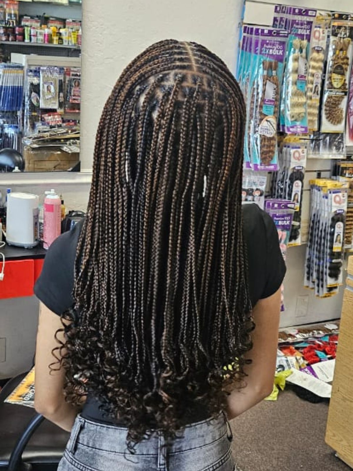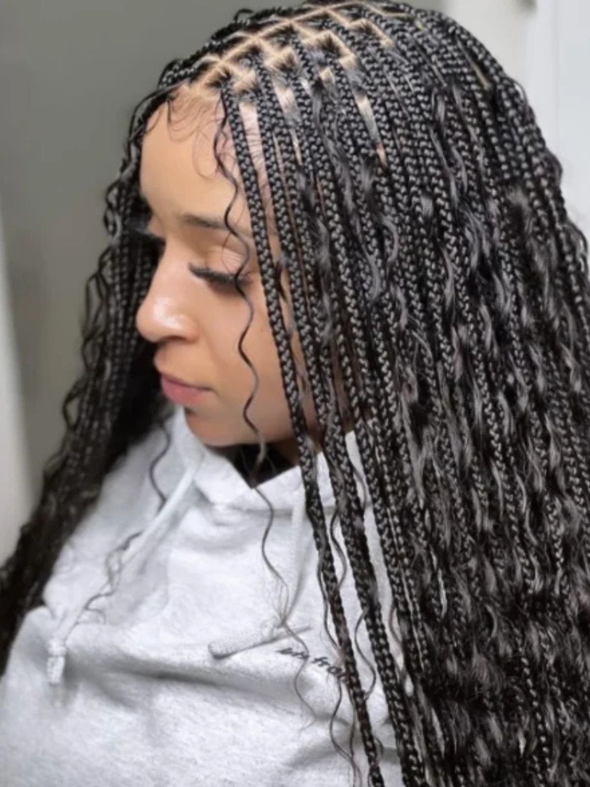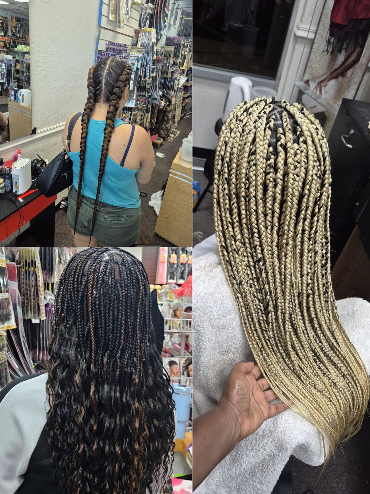 •  Box braids, knotless braids, and cornrows for protective styling.